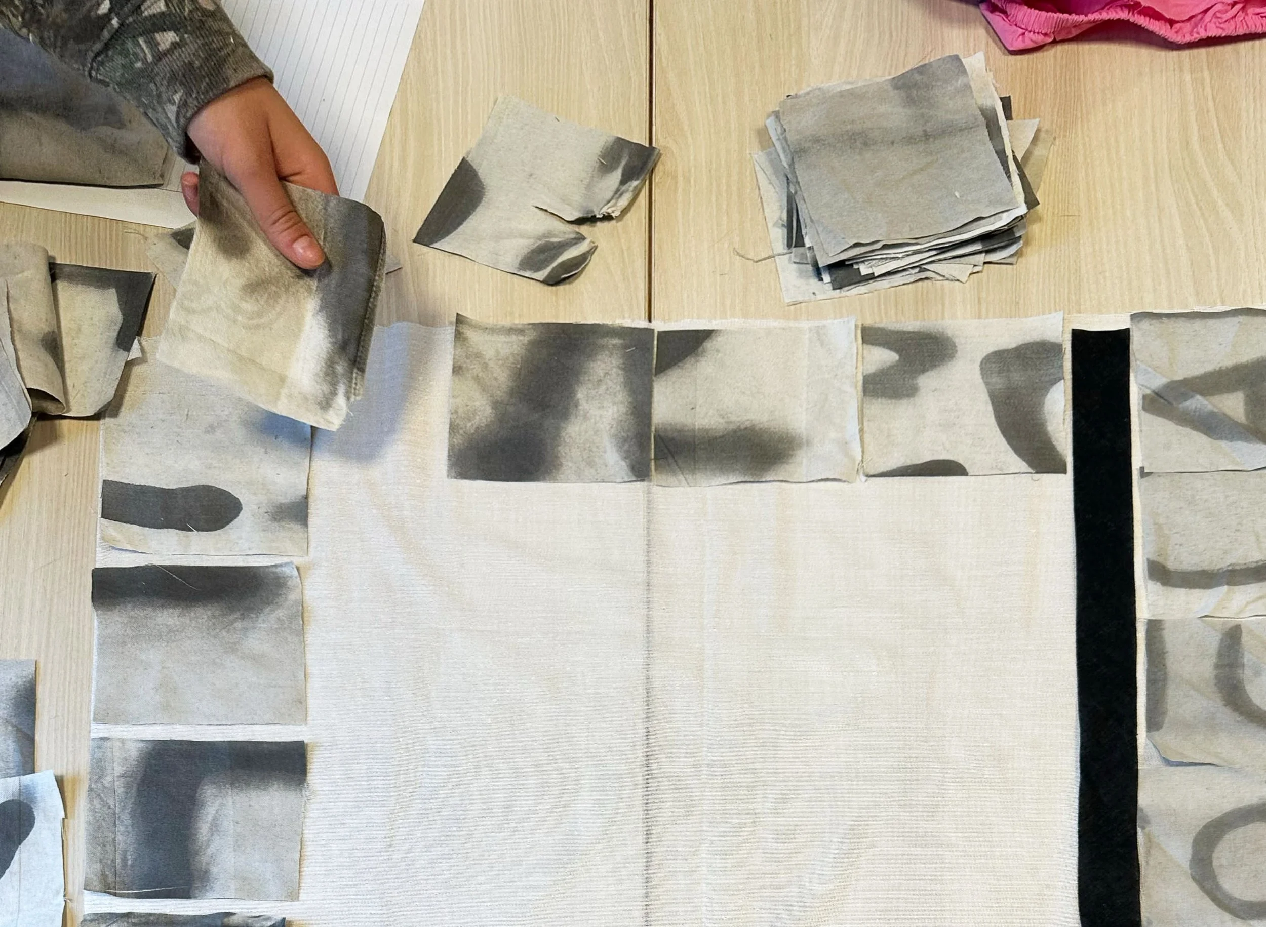 Van oude spandoeken die boven het spoorviaduct hangen maken we samen een groot quilt, ter ere van het 150 jarig bestaan van IJmuiden en het Noordzeekanaal.
